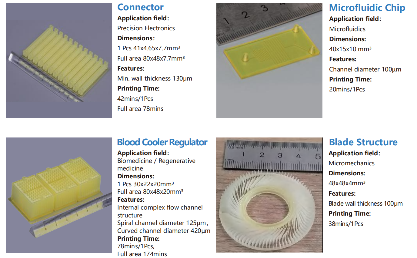 The platform supports a wide range of engineering resins and biomaterials with varying viscosities, making it adaptable for functional prototyping, microfluidics,biomedical research, advanced material development.